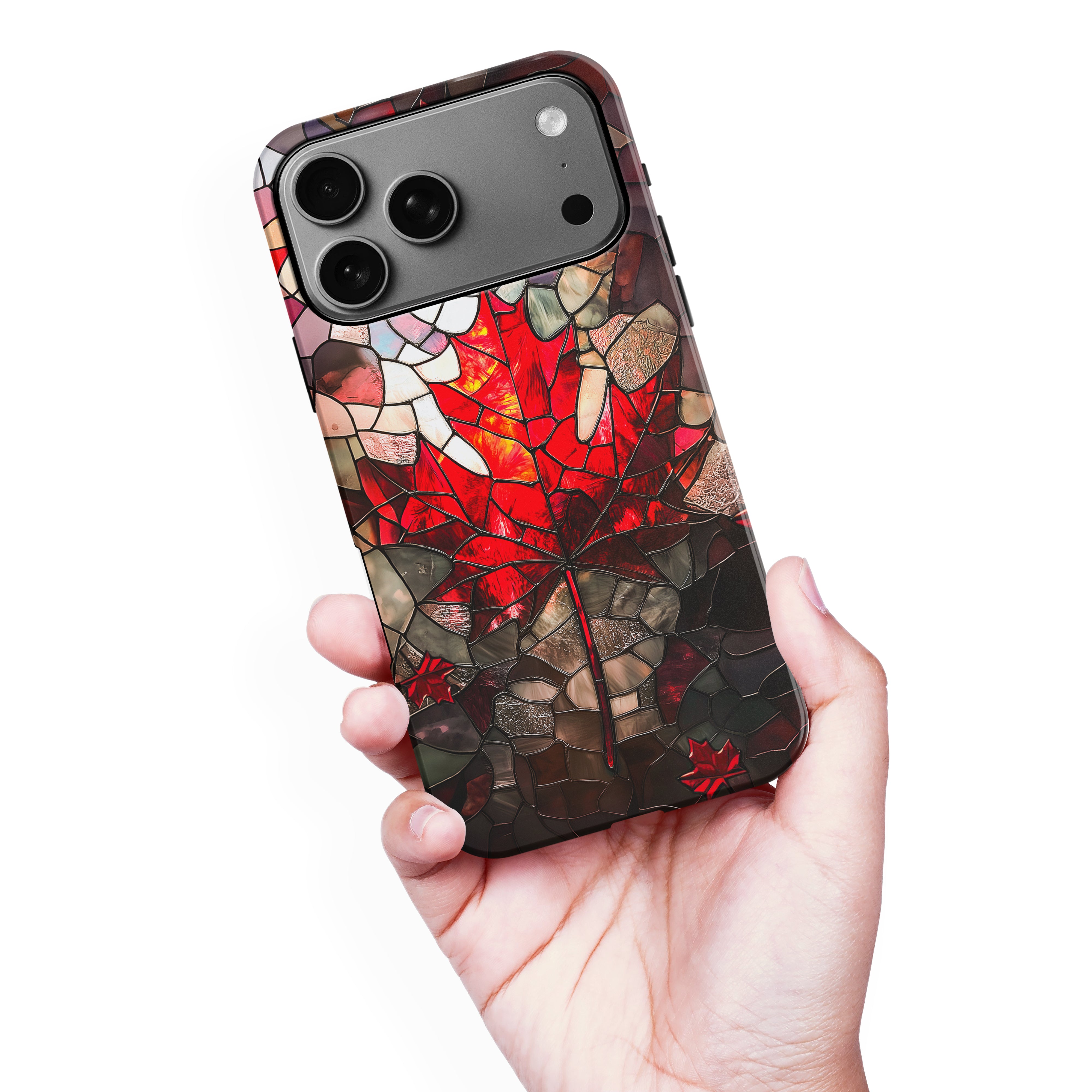 A stunning stained-glass maple leaf design lights up iPhone Cases, Samsung Phone Cases and Google Pixel Phone Cases by CaseMogul. Celebrate Canada's beauty through artistic expression, perfect for those who wear their national pride with elegance. A tribute to Canadian identity and timeless patriotism. CaseMogul Phone Cases. Designed for style. Built for protection.