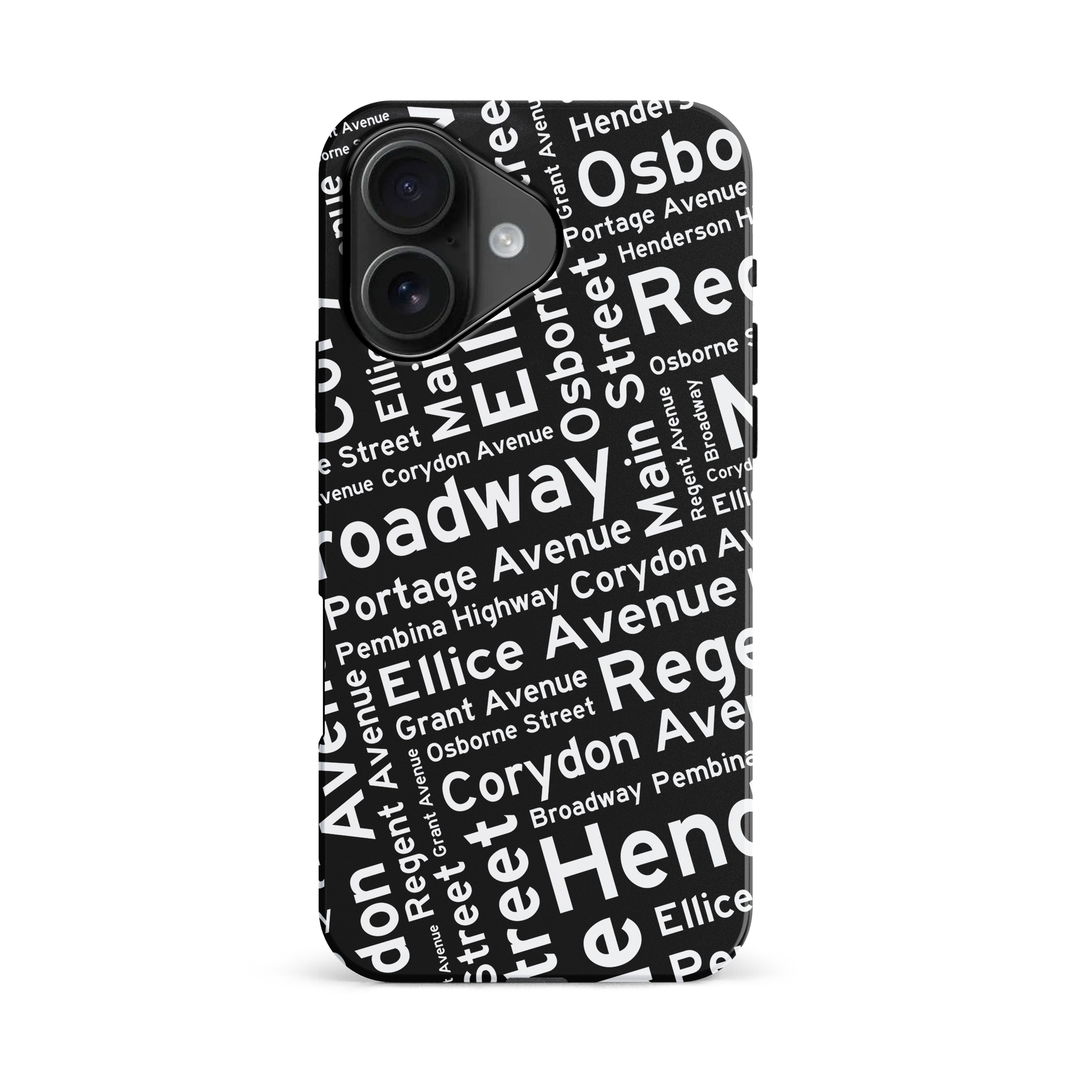Corydon Ave, Broadway, Portage Avenue, Main and Osborne Street all have one thing in common; they are part of Winnipeg's famous network of city streets. Put a piece of Winnipeg history onto your protective phone case!