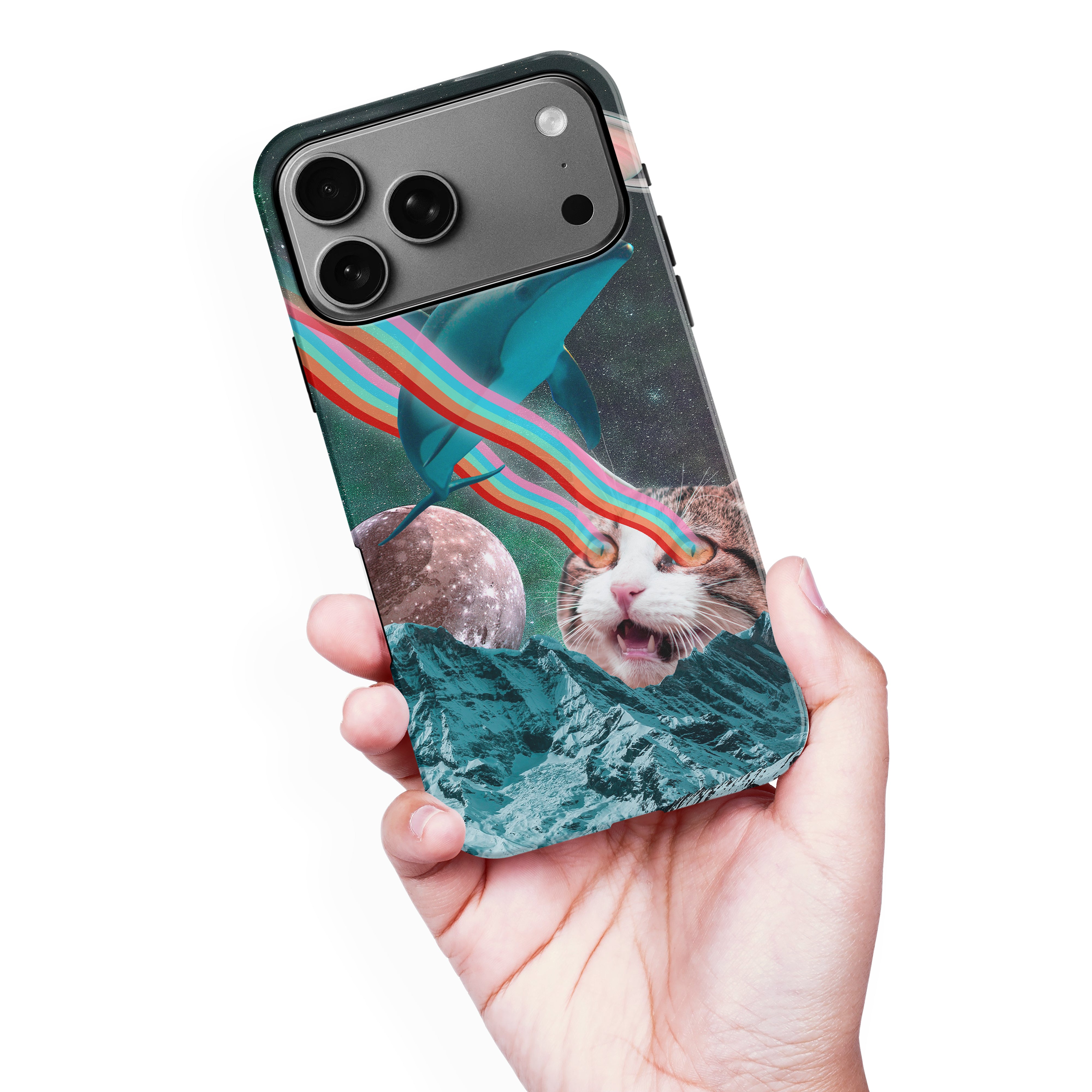 iPhone 17 Cats in Space Psychedelic Phone Case