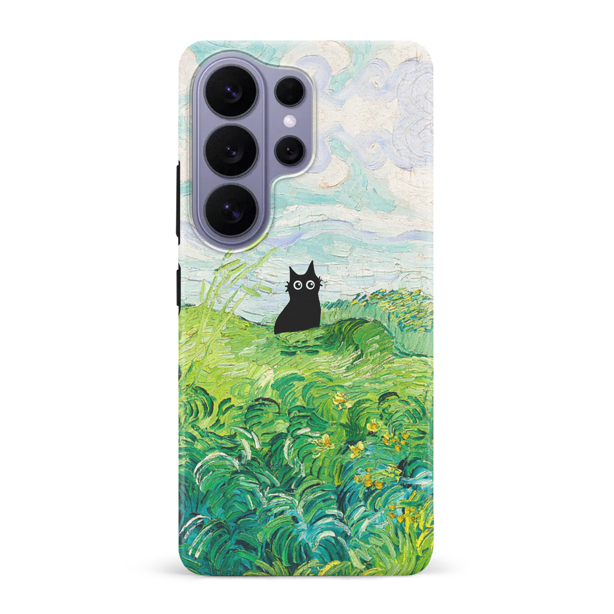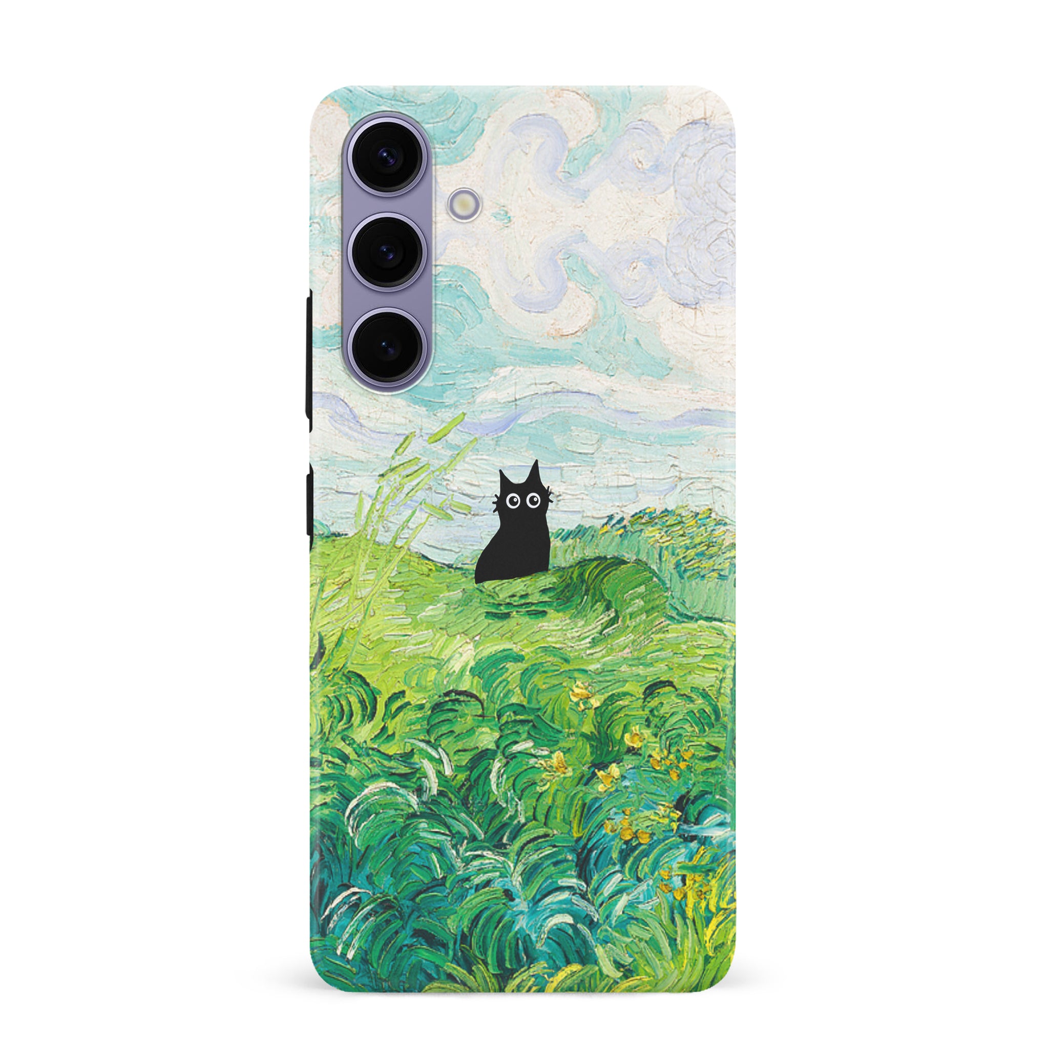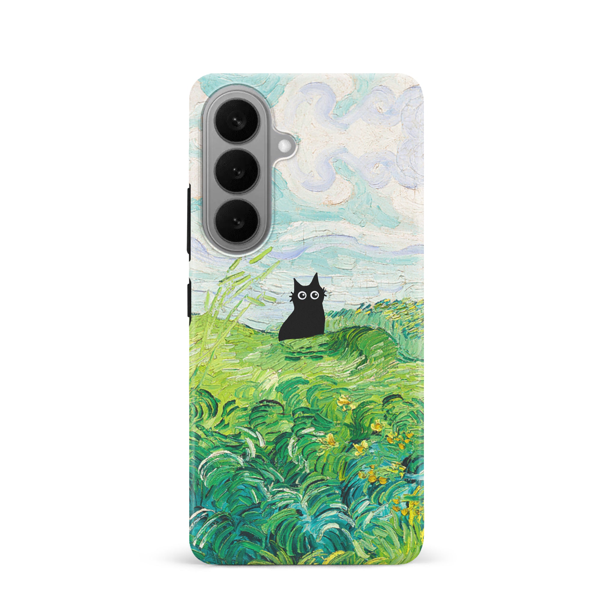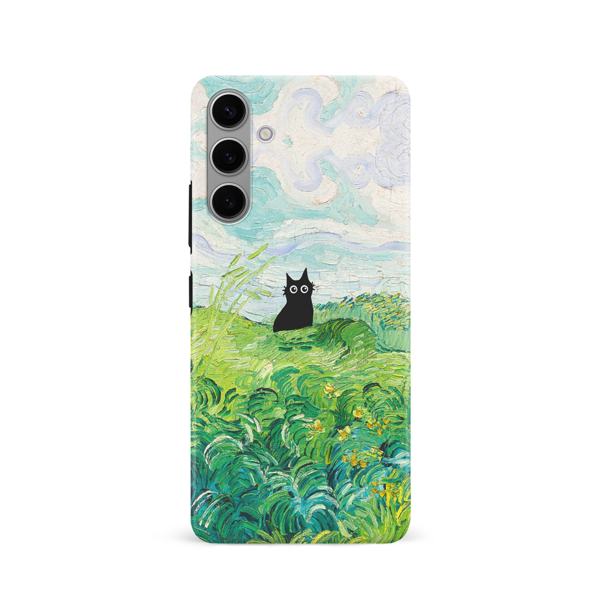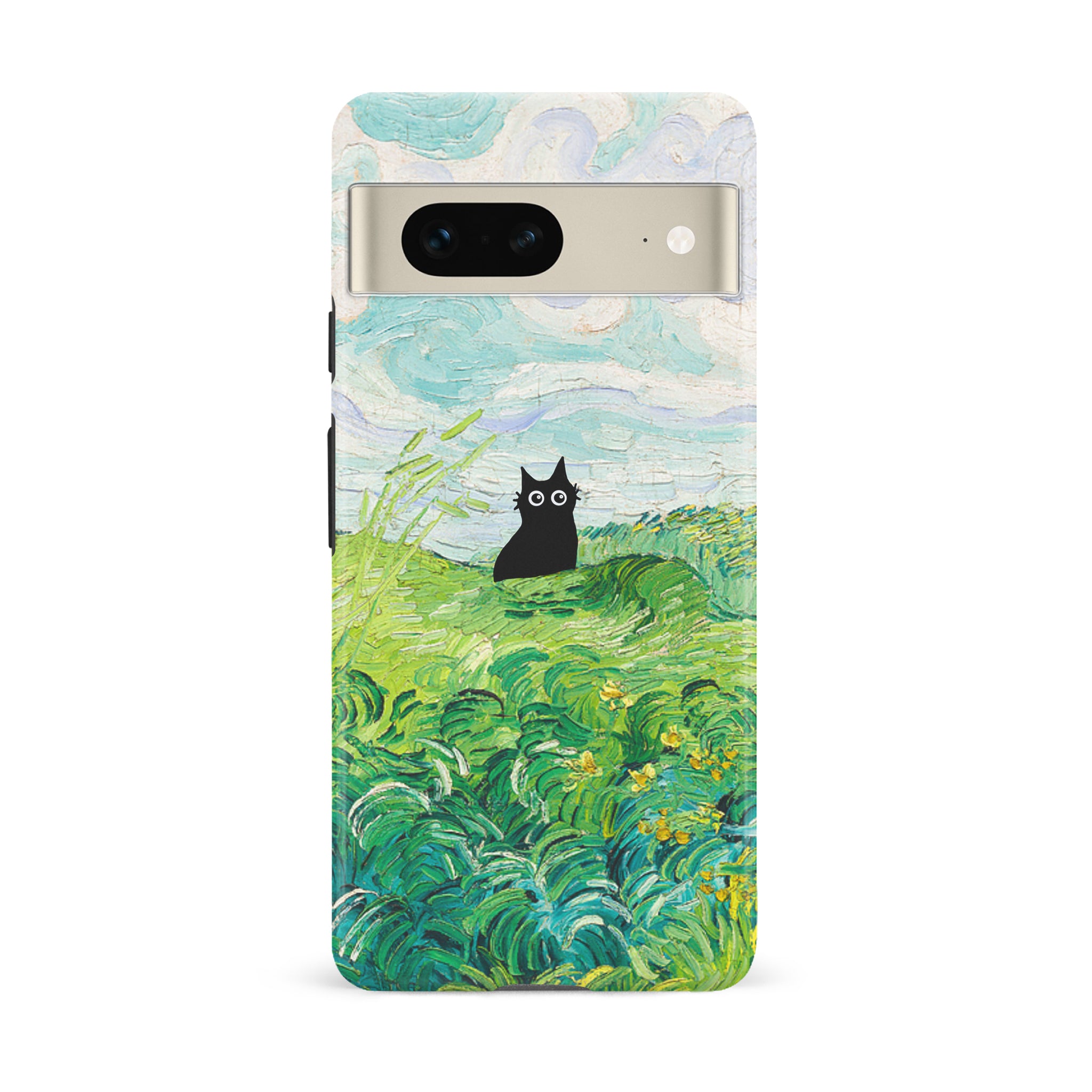 The Black Cat is at it again, this time she's perched atop Van Gogh's Green Wheat Fields. Cat lovers, get this impressionist painting phone case for your iPhone, Google Pixel or Samsung Galaxy and Note today!