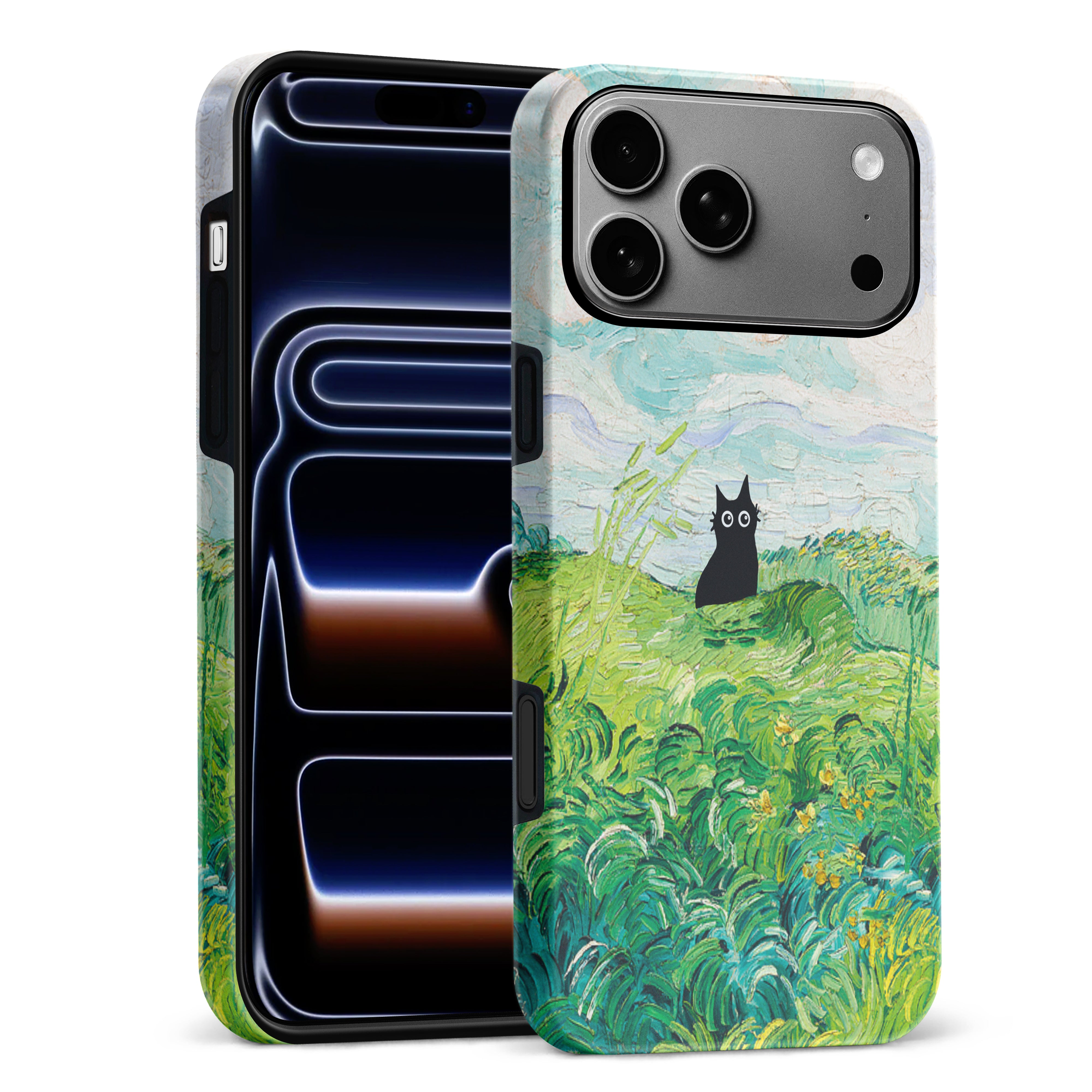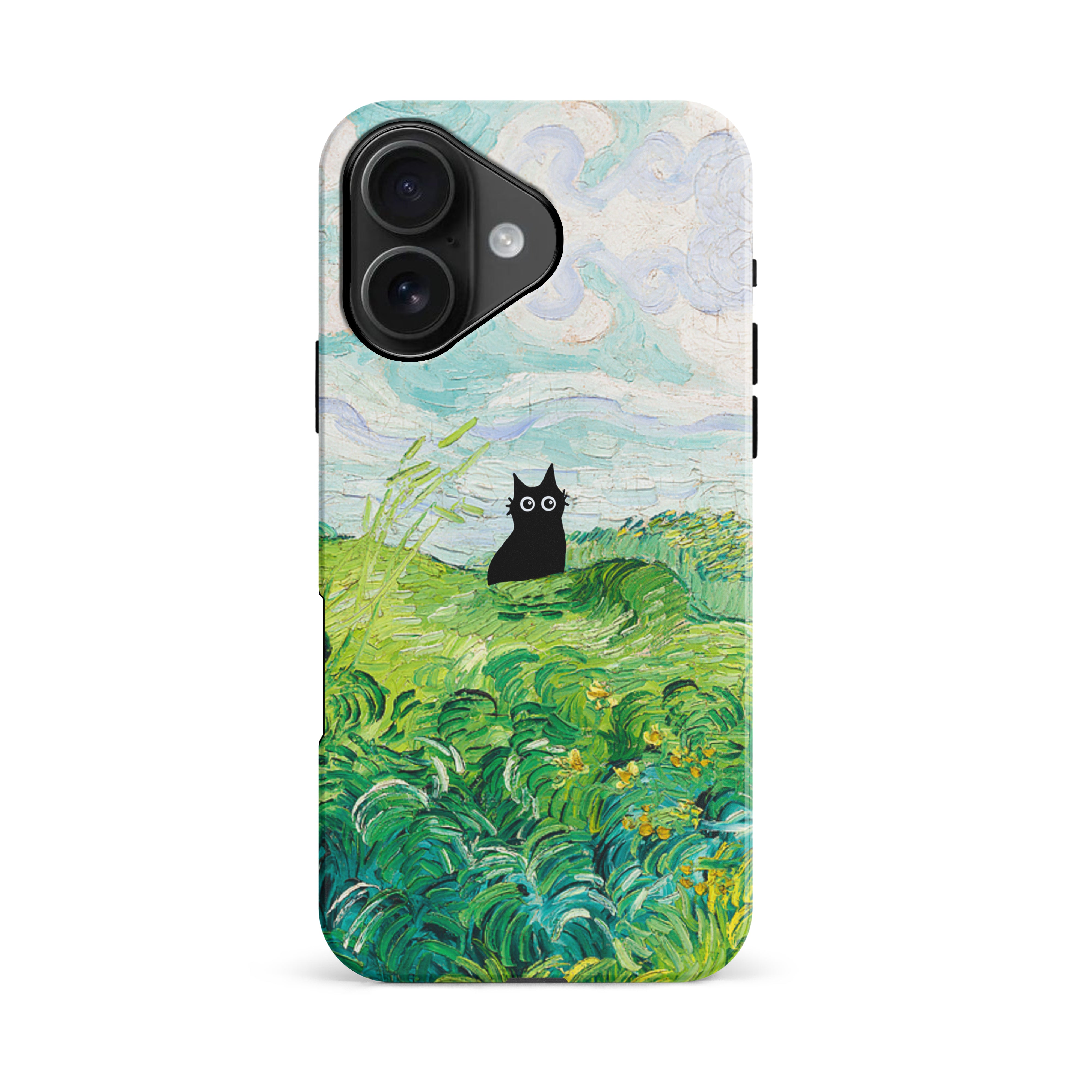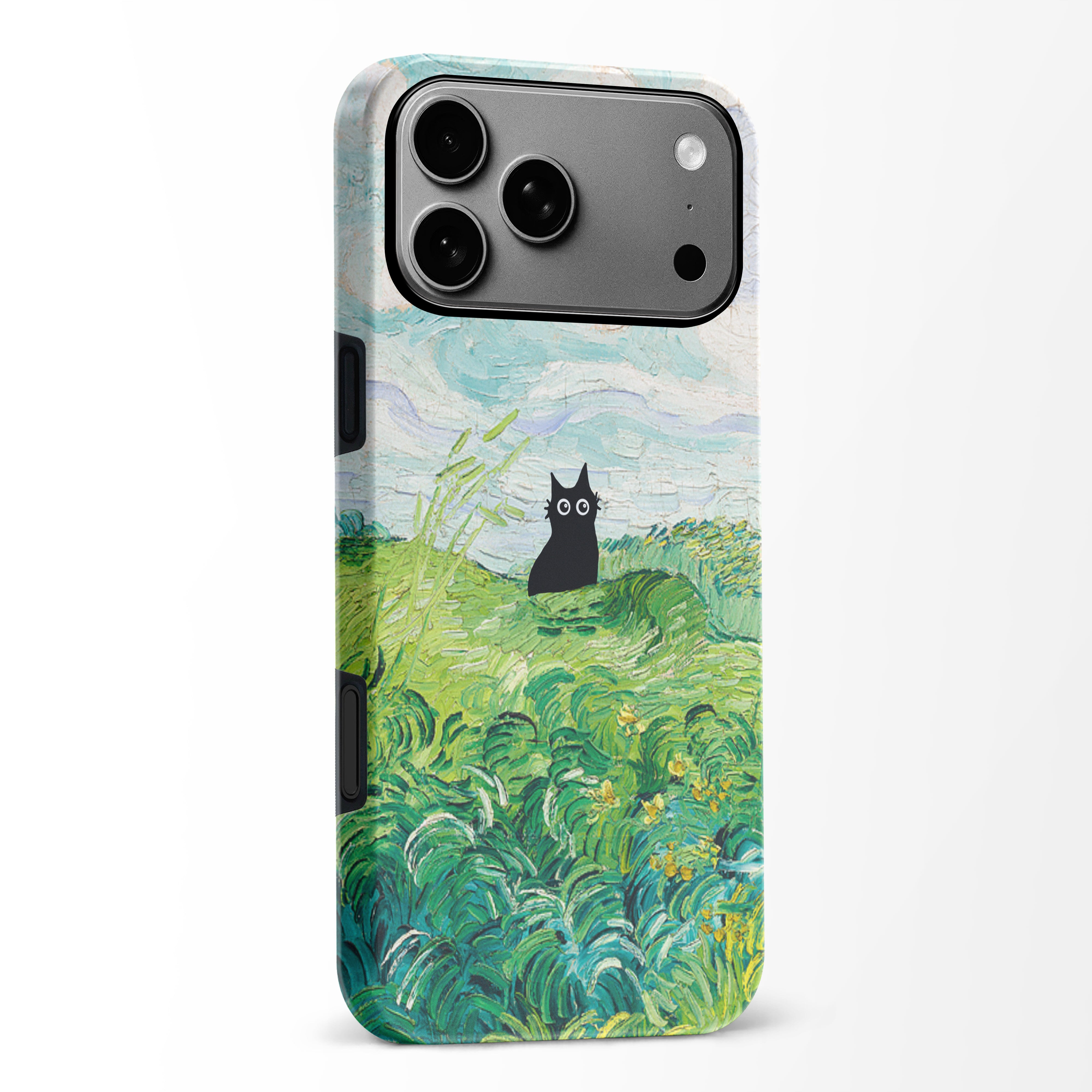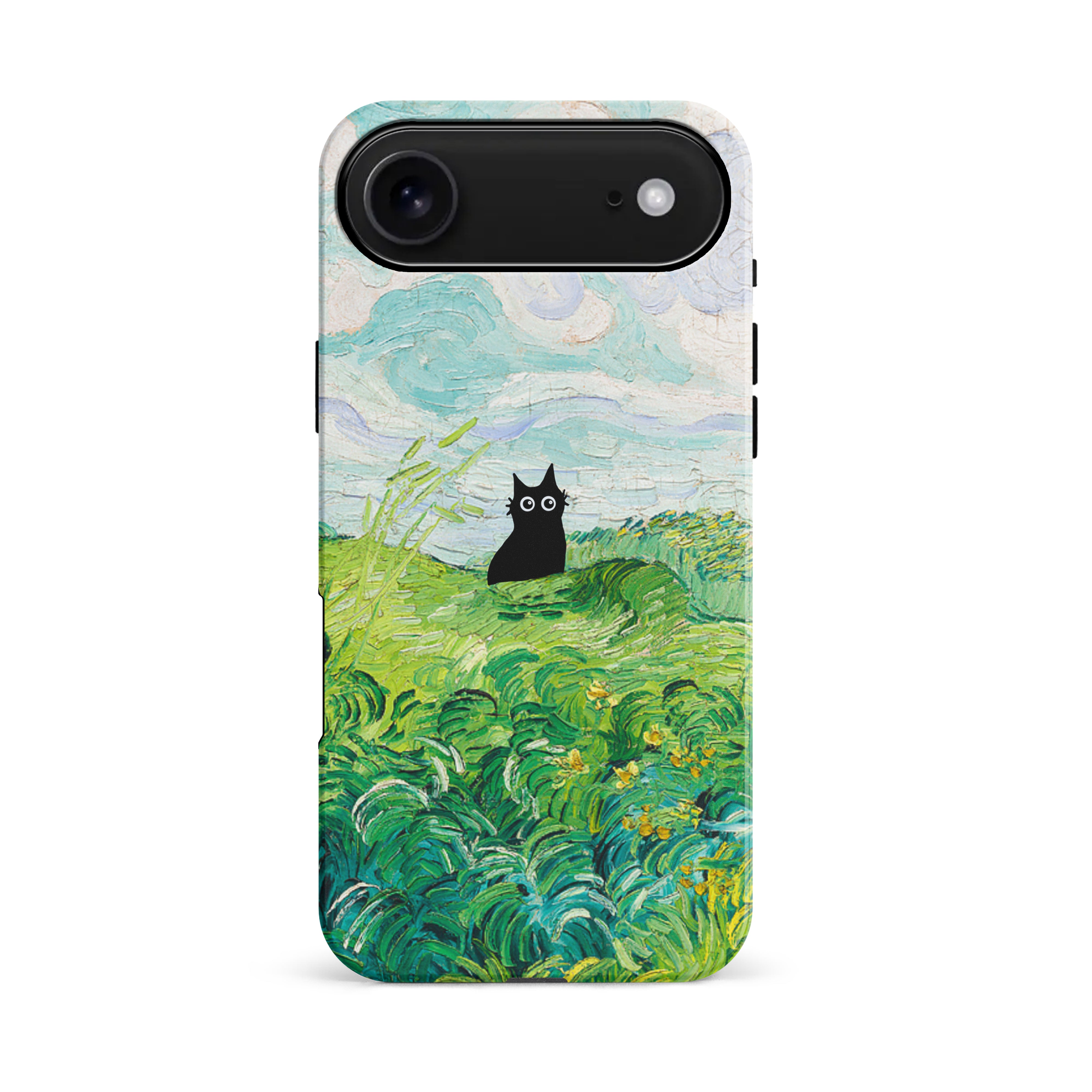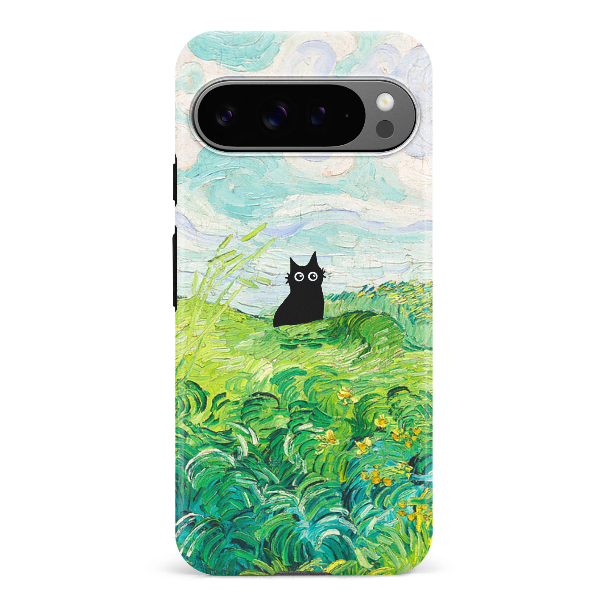 The Black Cat is at it again, this time she's perched atop Van Gogh's Green Wheat Fields. Cat lovers, get this impressionist painting phone case for your iPhone, Google Pixel or Samsung Galaxy and Note today!