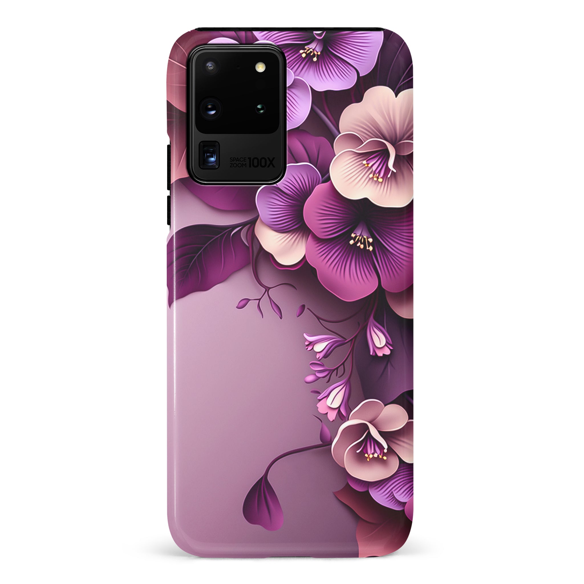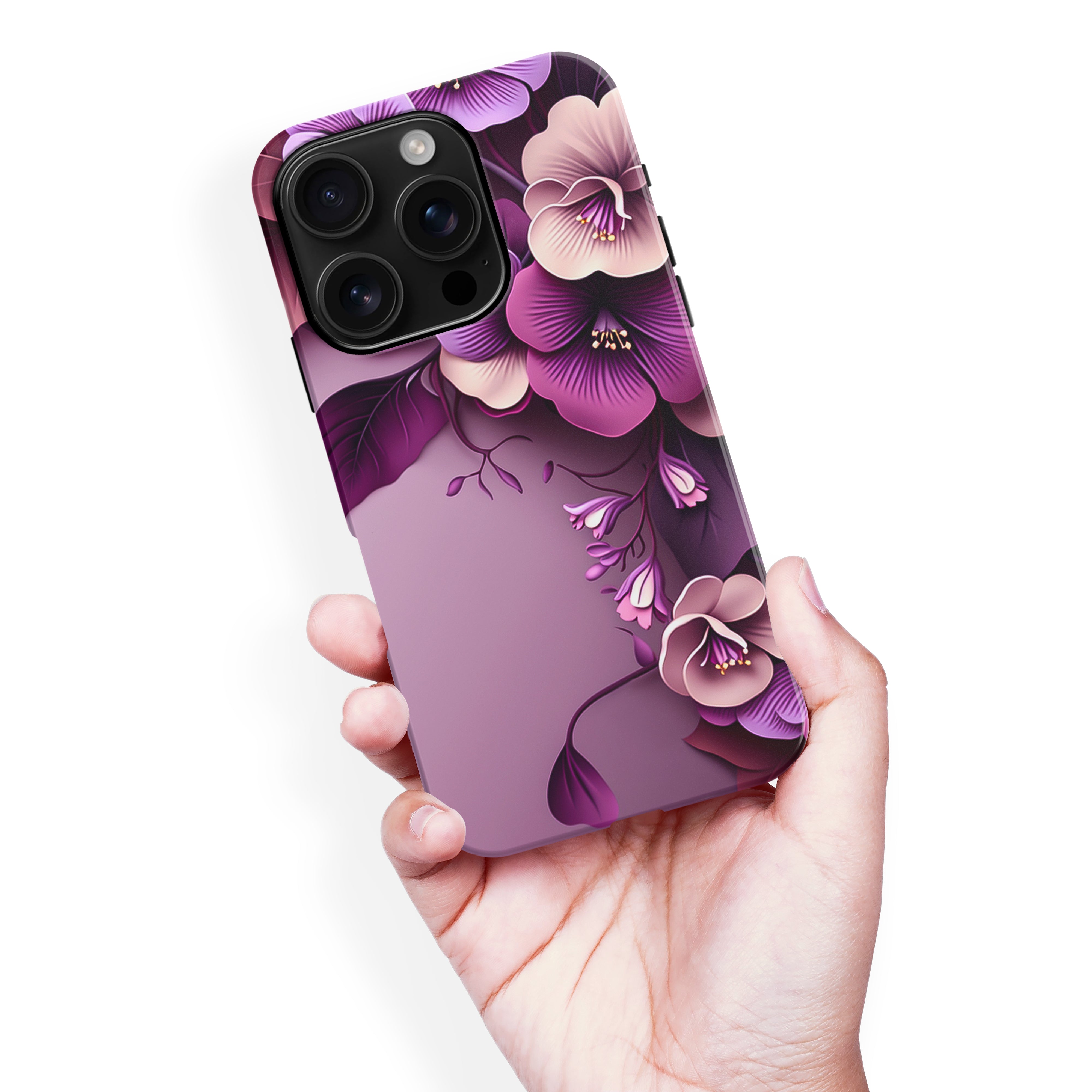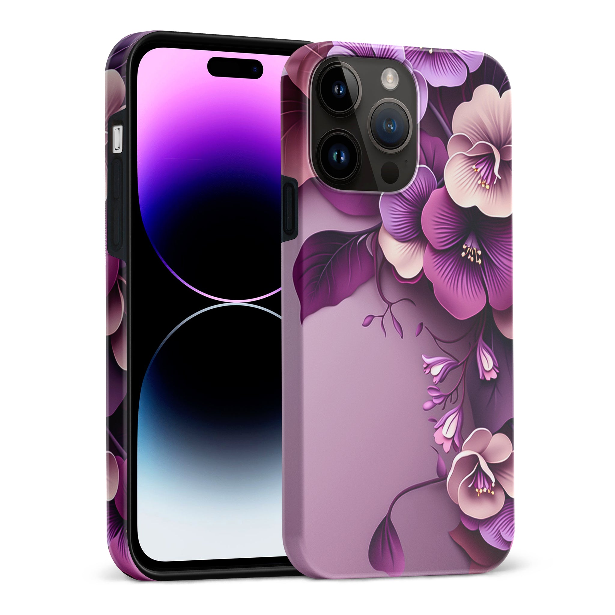 The Hibiscus Phone Case in Purple is a vibrant and eye-catching accessory for your phone.